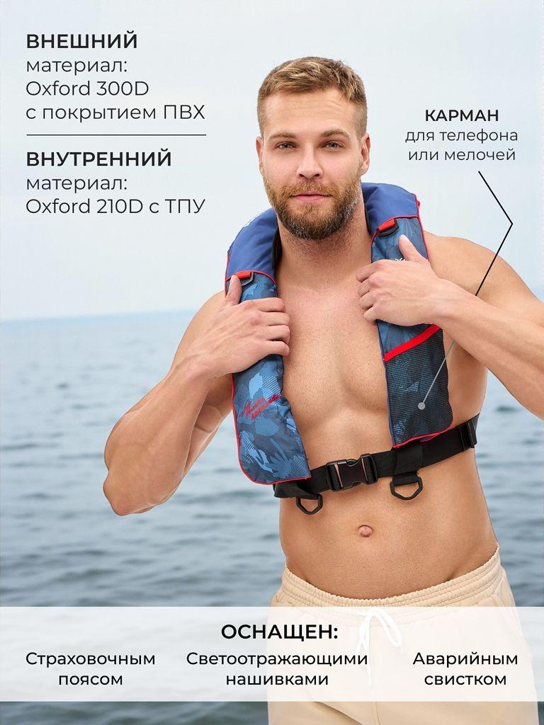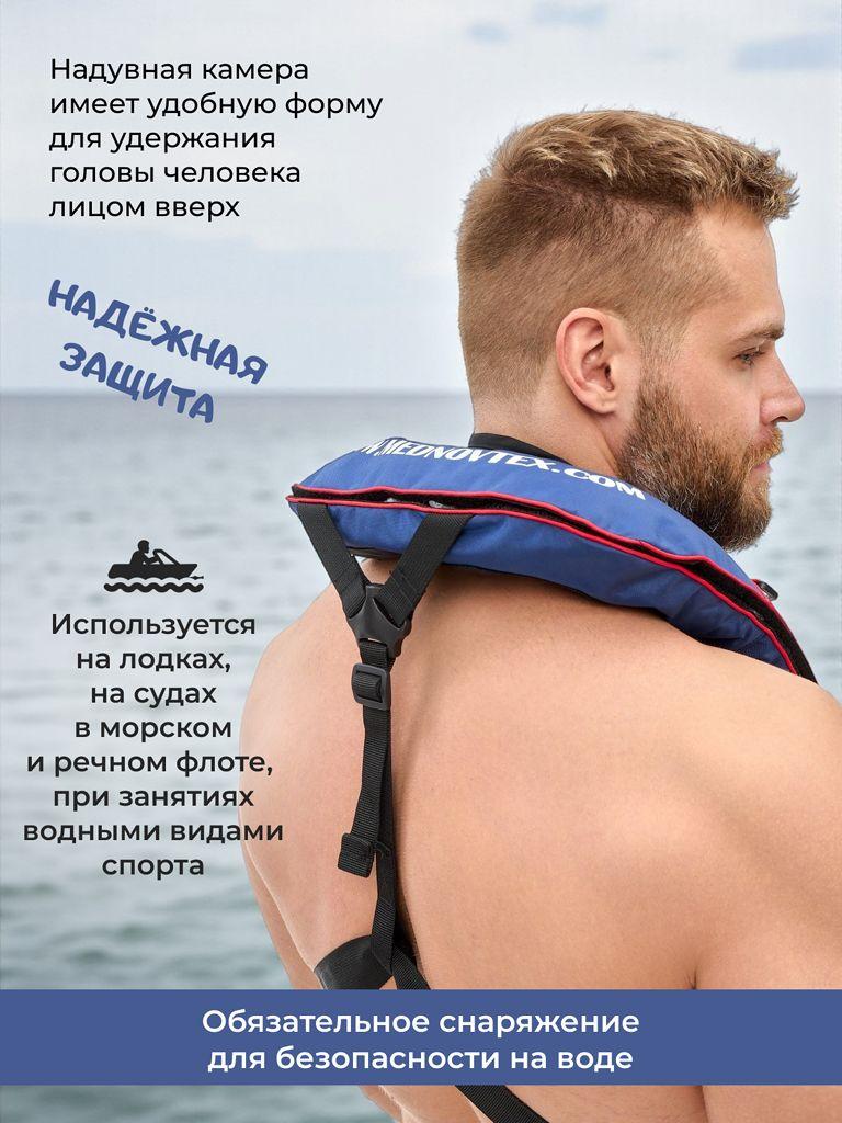 Самонадувающийся (автоматический) спасательный жилет MEDNOVTEX (синий) для взрослых до 120 кг.