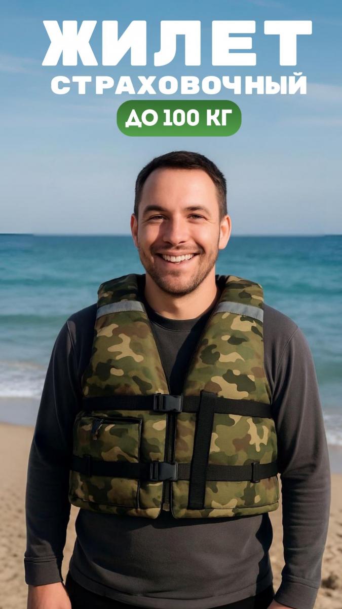 Страховочный жилет для взрослых до 100 кг (камуфляж)